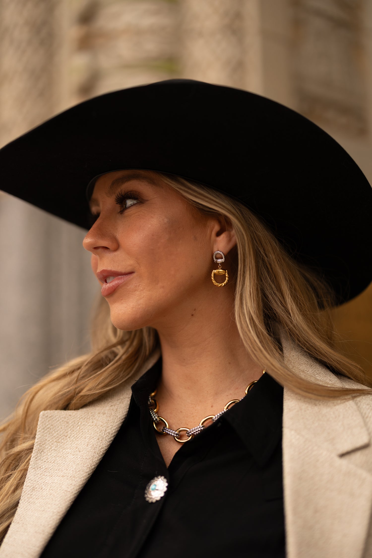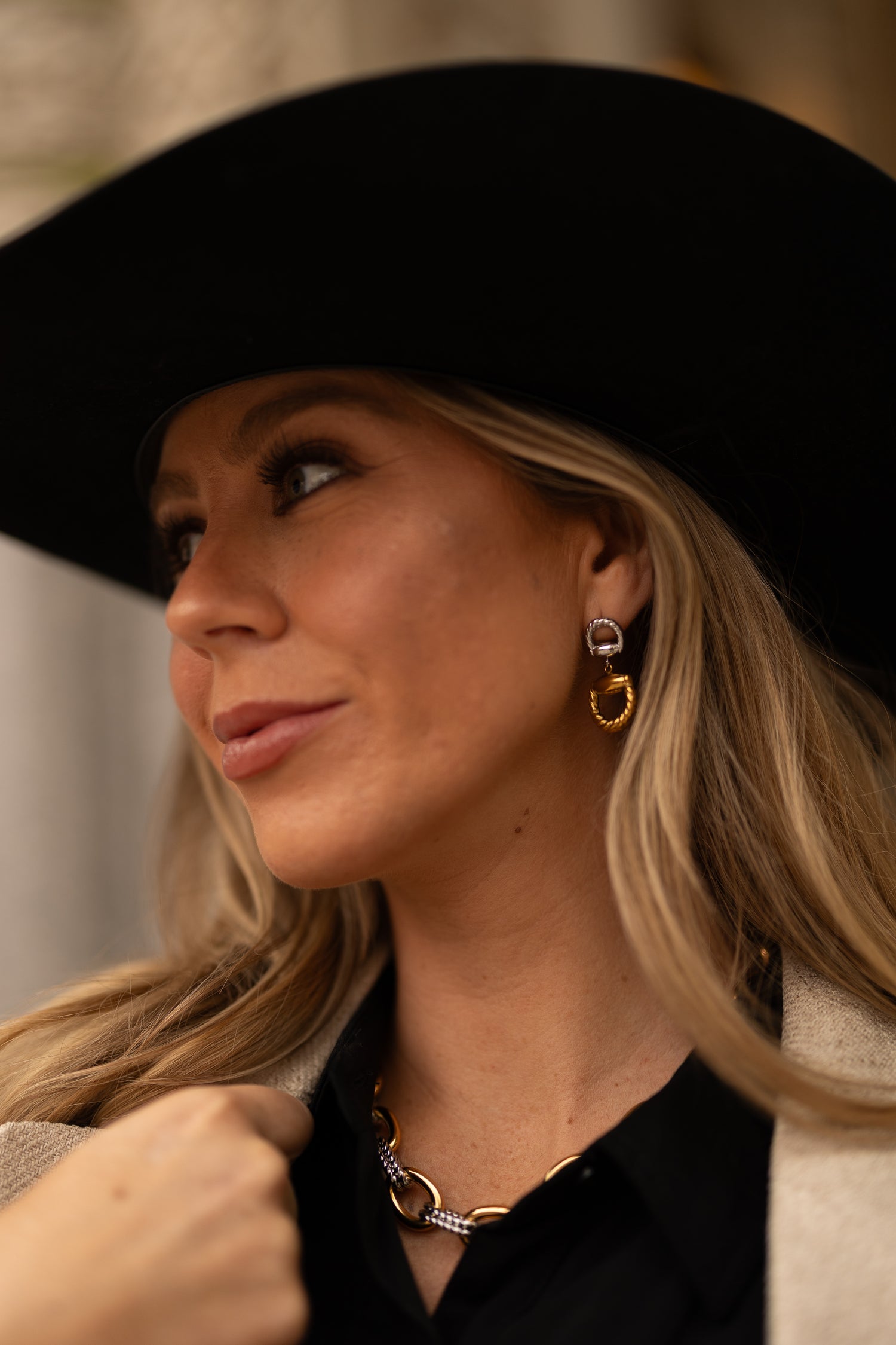 Double the luck and double the shine!! These earrings are a fun mixed metal moment with the silver and gold contrasting horseshoe shape!