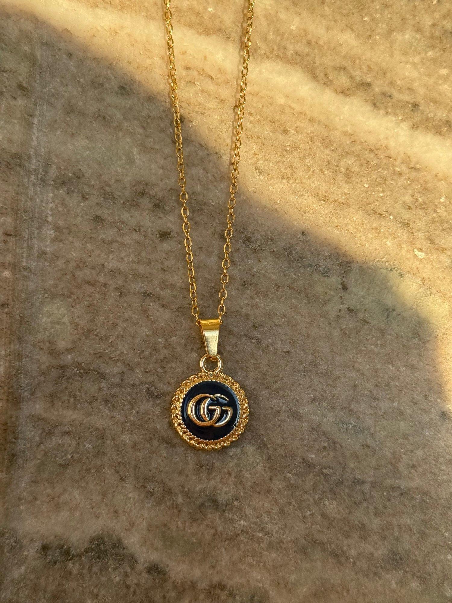 - Finished on a luxe gold-tone chain
