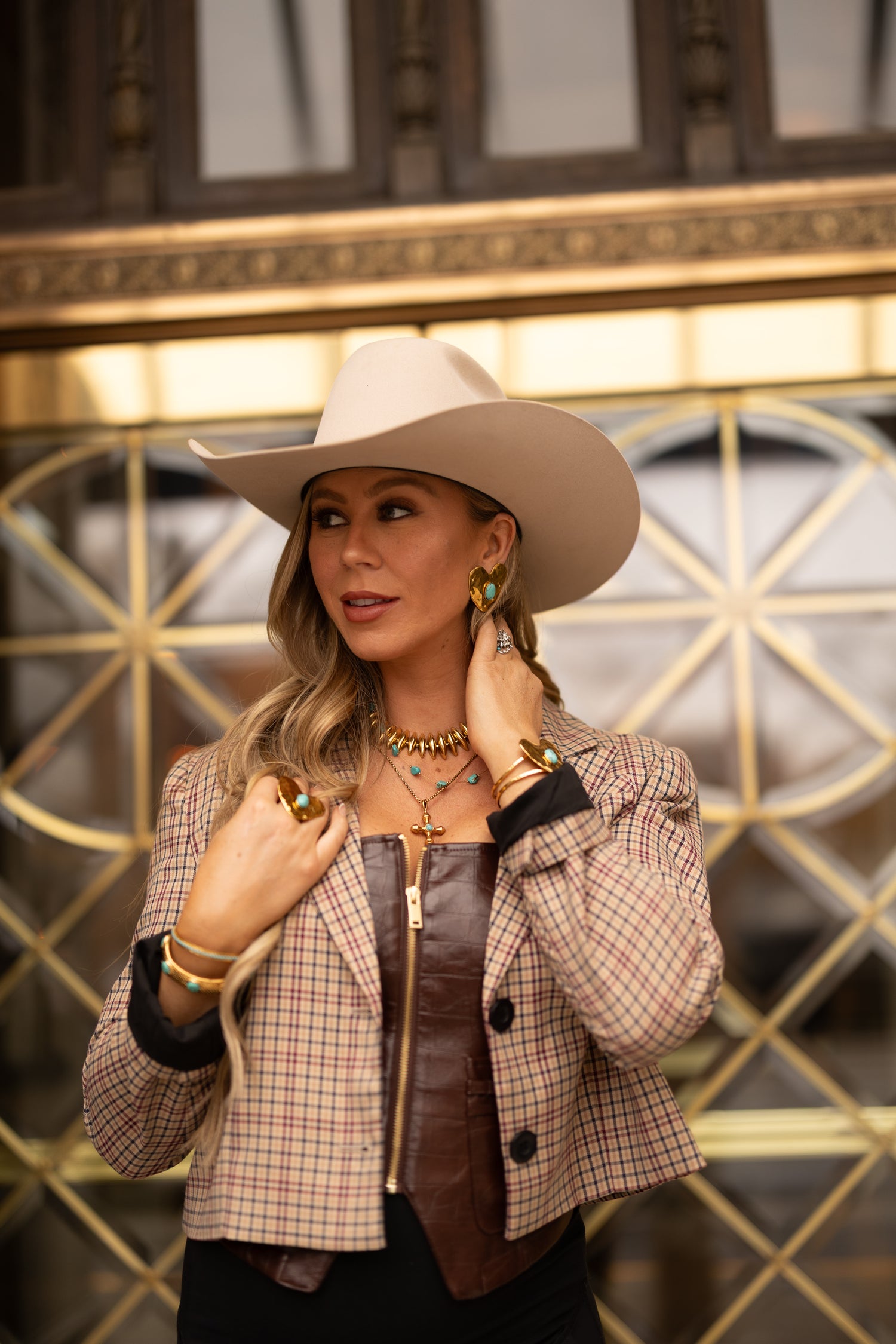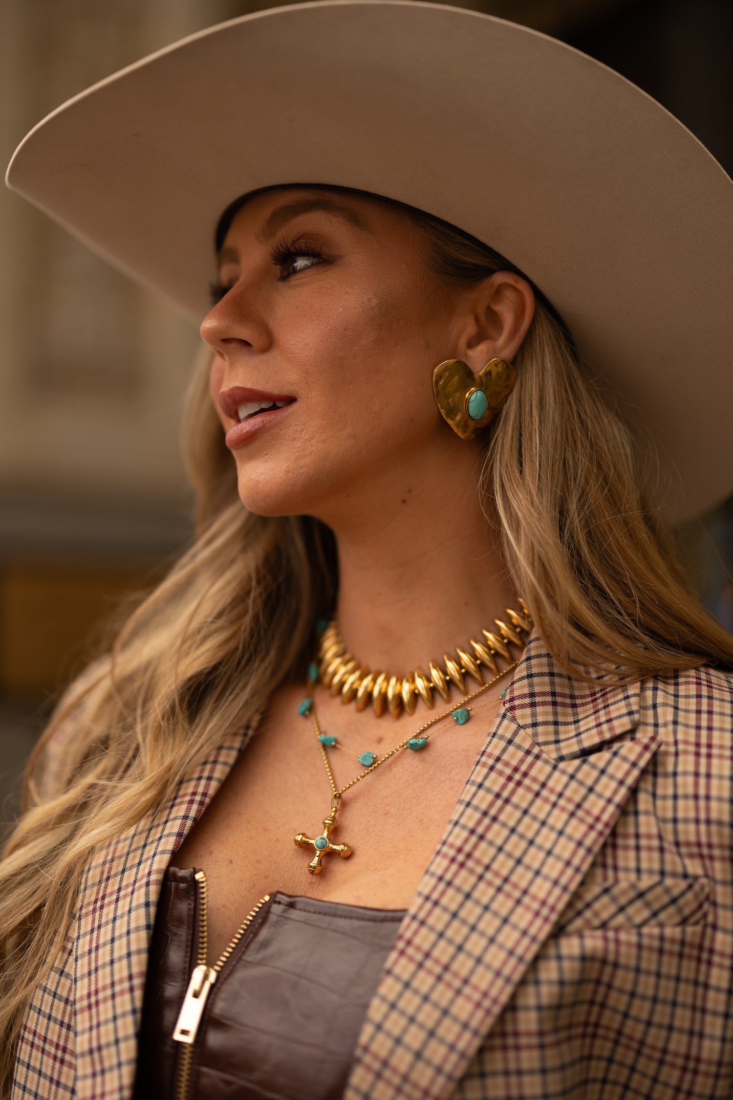 These gold heart studs include a genuine, vibrant turquoise center that truly adds that cowgirl charm!